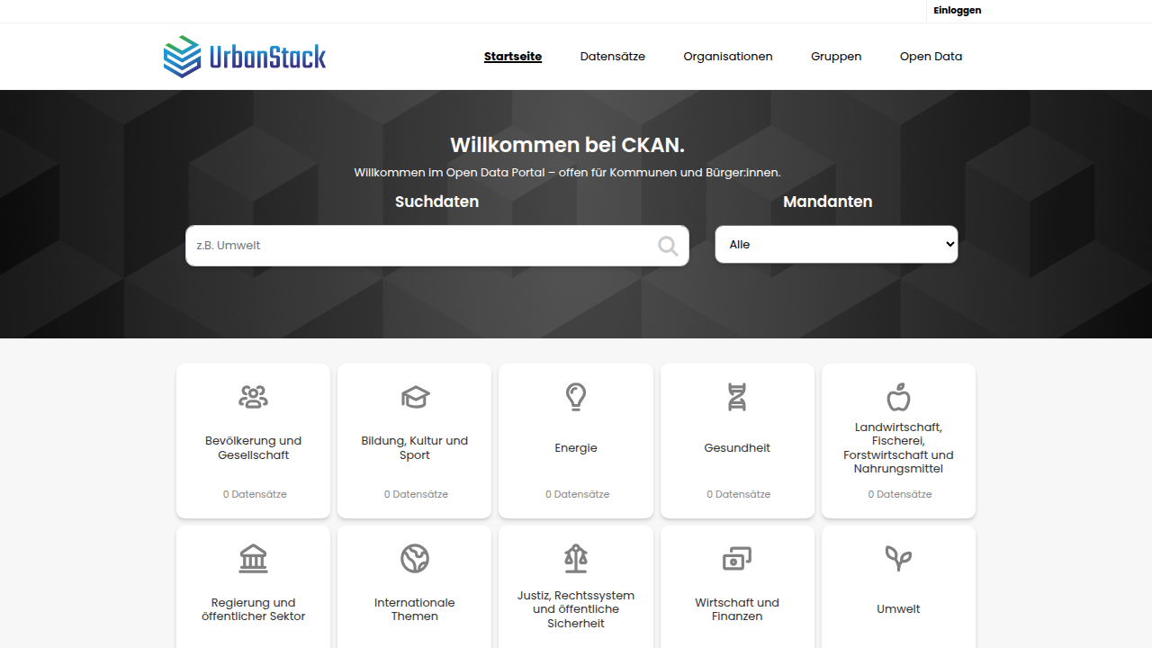 Unter https://ckan.urbanstack.de/ ist CKAN erreichbar.