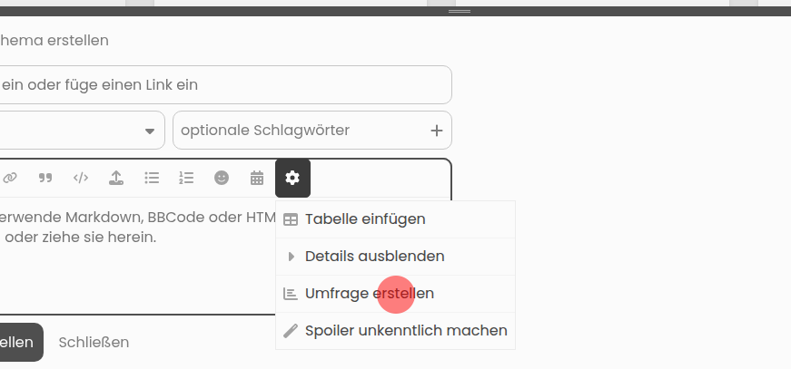 Auch ist es möglich, Umfragen direkt in einem Thema zu erstellen.