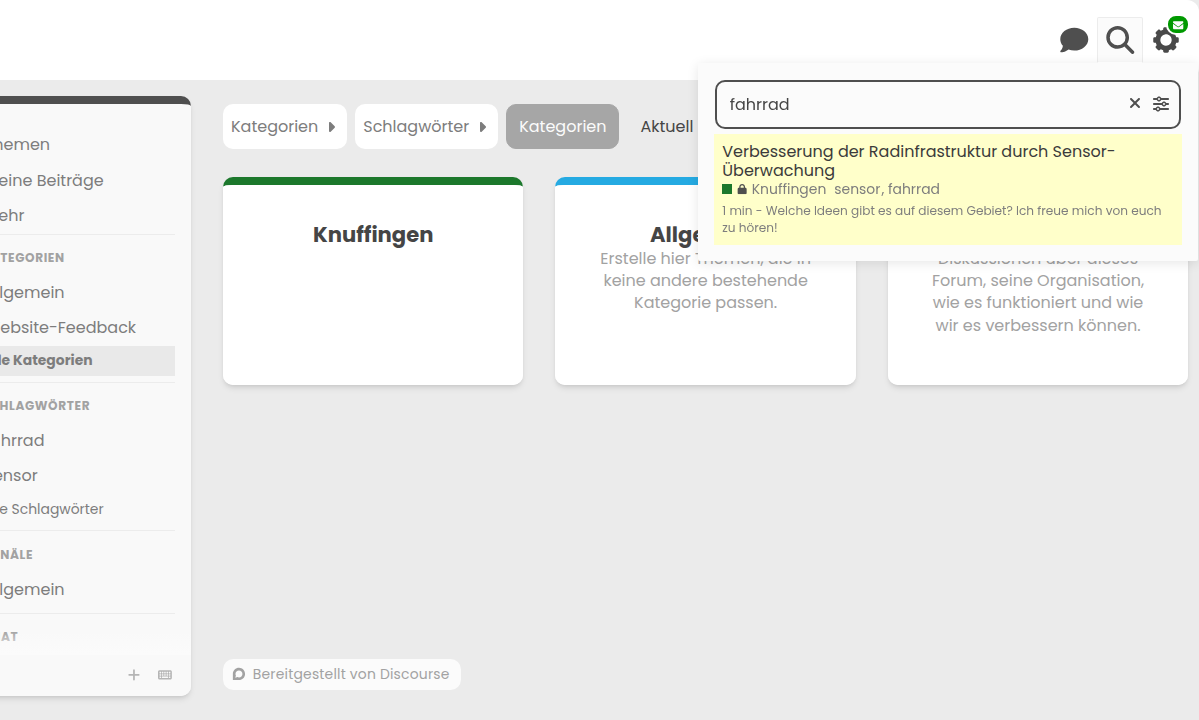 Außerdem können Schlagwörter für Themen vergeben werden, um diese zu ordnen und später (z.B. über die Suche) wiederfinden zu können.