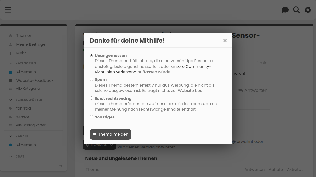 Sollte ein Beitrag gegen die Community-Richtlinien verstoßen, kann dieser dem Moderations-Team über den "Melden"-Button gemeldet werden.