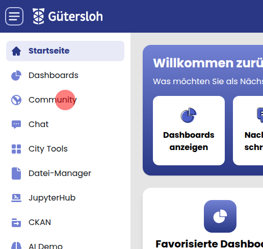 Discourse ist die zentrale Chat- und Diskussionskomponente für die Community des Urbanstacks. Die Anwendung kann eingebettet über den Gov Hub aufgerufen werden: