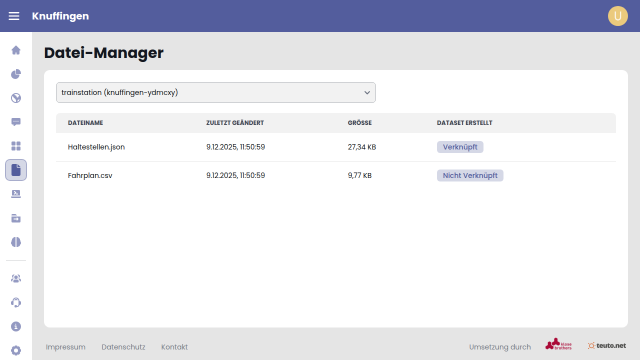 Eine Datei kann durch einen Klick auf das Mülleimer-Icon der entsprechenden Tabellenzeile gelöscht werden.