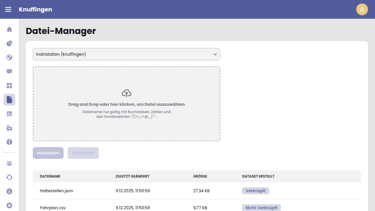 Es werden nur CSV- und JSON-Dateien akzeptiert.